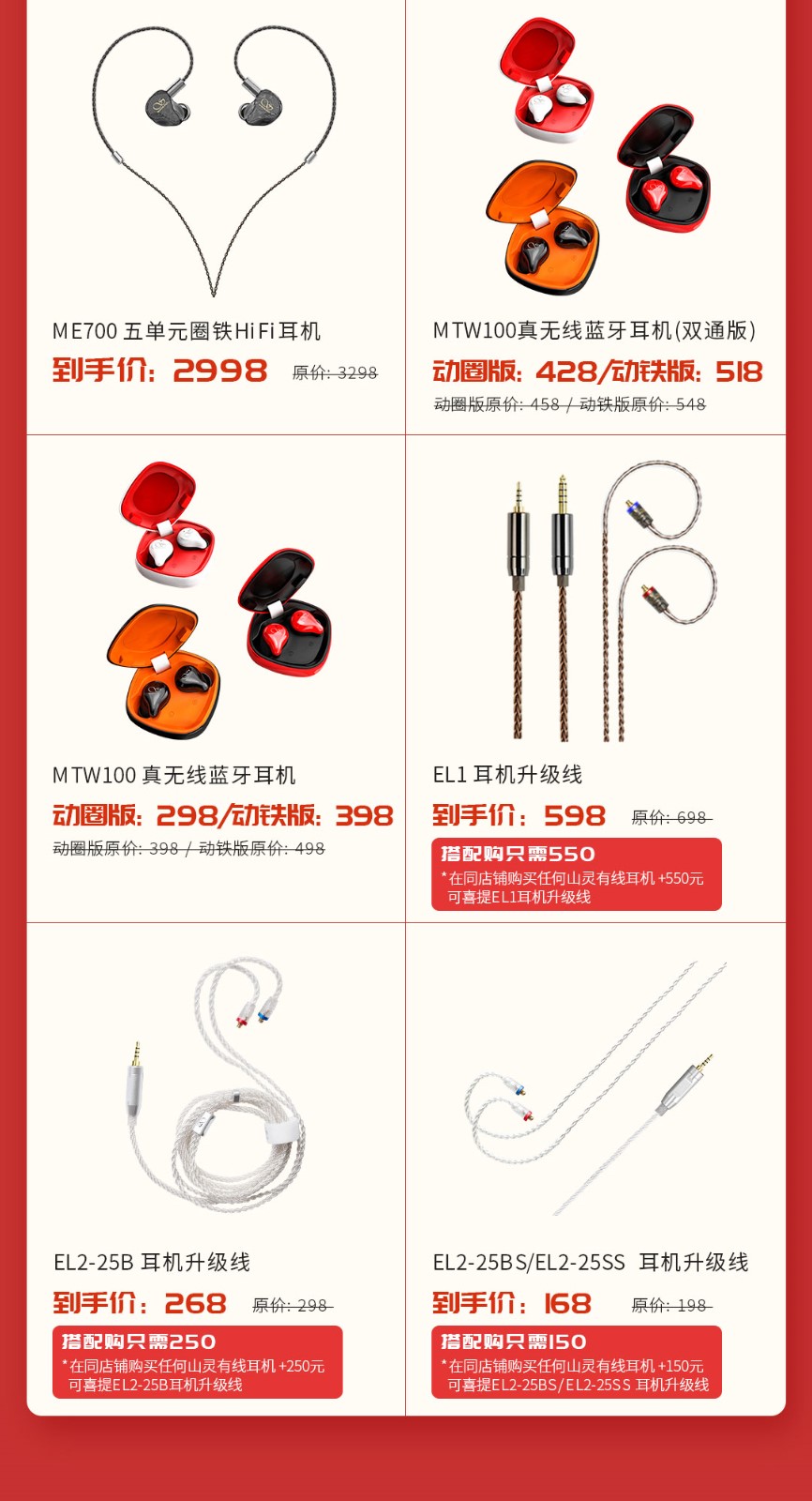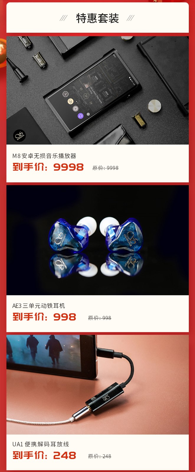 年度旗艦山靈M8、三單元動鐵耳機AE3、便攜解碼耳放線UA1等新品均已開售,新品不參與促銷,均為原價銷售。